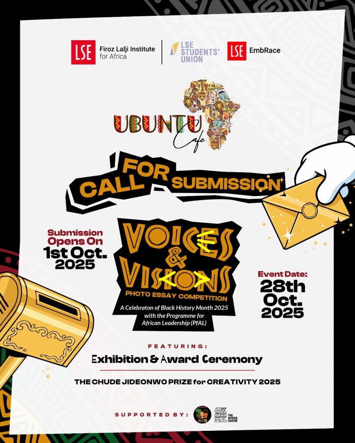 The Firoz Lalji Institute for Africa has announced the call for entries for The Chude Jideonwo Prize for Creativity 2025, as part of its annual Black History Month Photo Essay Competition themed “Voices & Visions.” The competition invites Black and African students, professionals, and community members across the United Kingdom to tell their stories through the art of the photo essay, blending imagery and words to illuminate the unseen, unheard, and unforgettable.